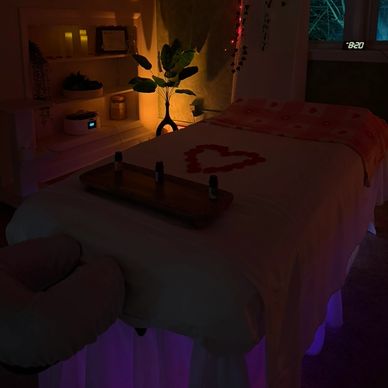 Rose petals are placed throughout the room to enhance the atmosphere and add a thoughtful, romantic touch—perfect for making the session feel more special and intentional.